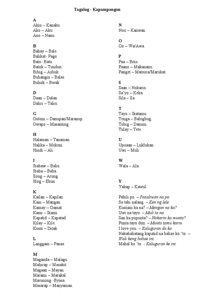 Mga Pamihiin Sa Pampanga. These are the lists of common phrases in Kapampangan translated to English.