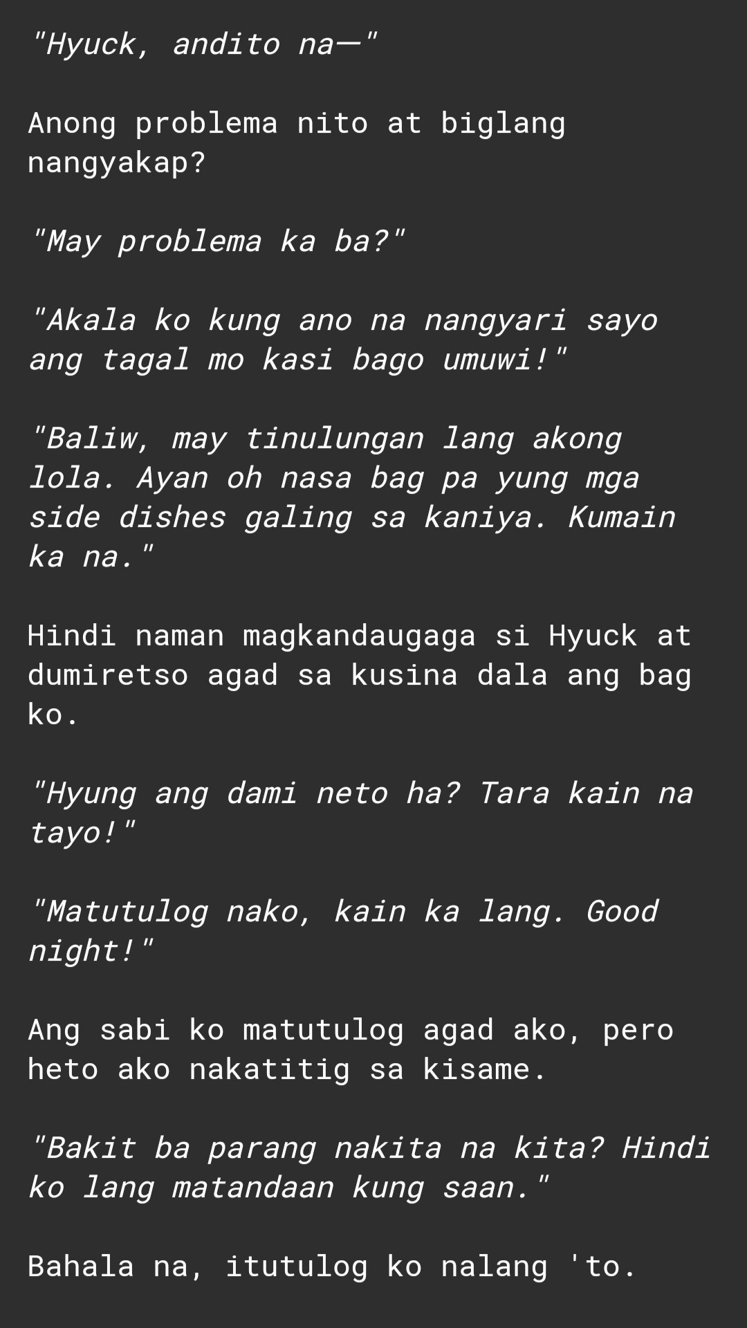 Eat first its late dinner time did you eat i feel hungry maligo ka mona. SUGAR AY PARANG DRUGS. Hindi ka naman panget hindi ka lang talaga maganda.